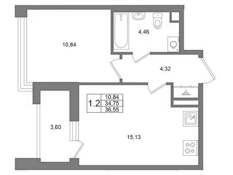 • Площадь34,75 м2