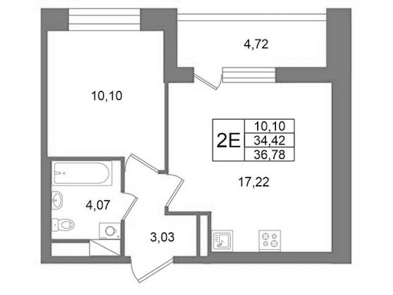 - Площадь34,42 м2
