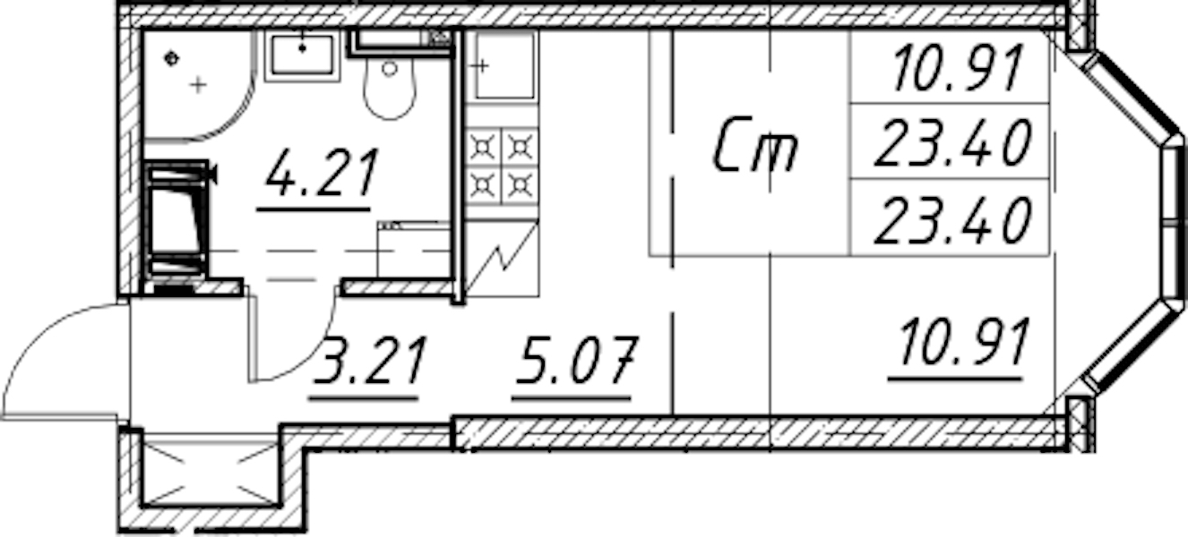 - Площадь23,4 м2