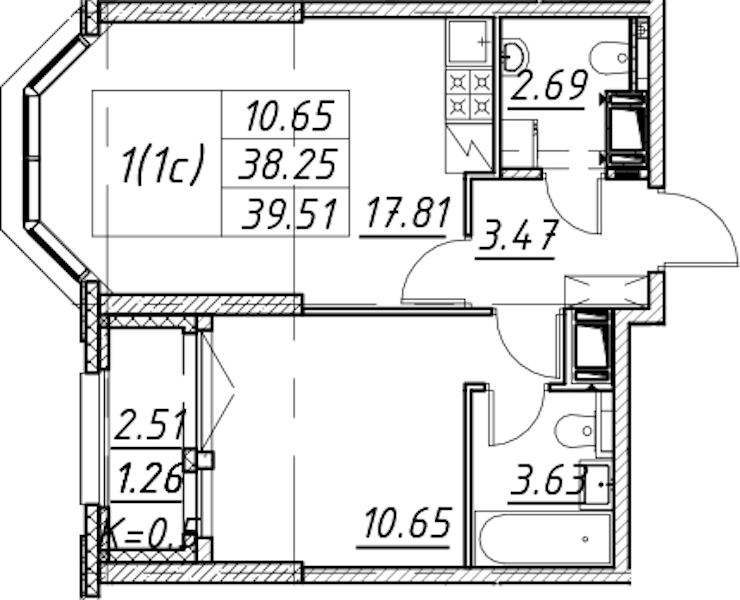 - Площадь39,51 м2
