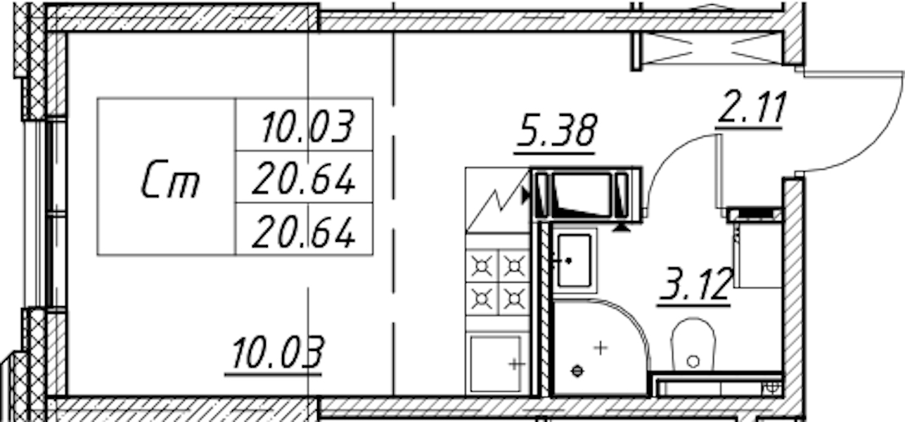 - Площадь20,64 м2