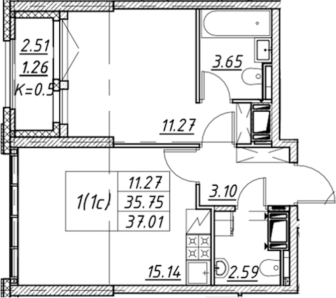 - Площадь37,01 м2