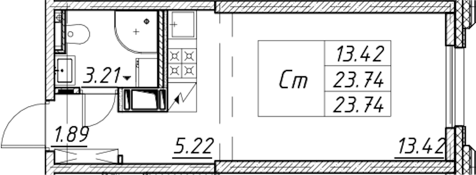 - Площадь23,74 м2