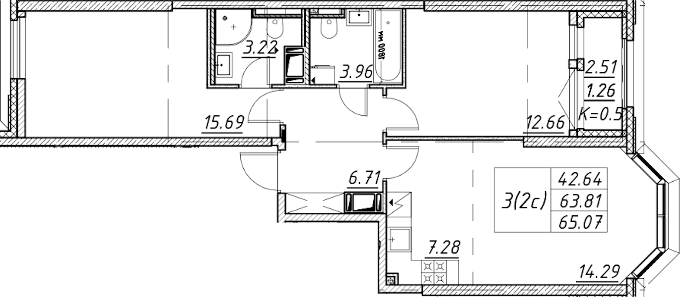 - Площадь65,07 м2