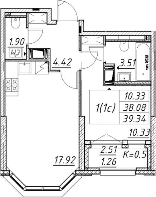 - Площадь39,34 м2