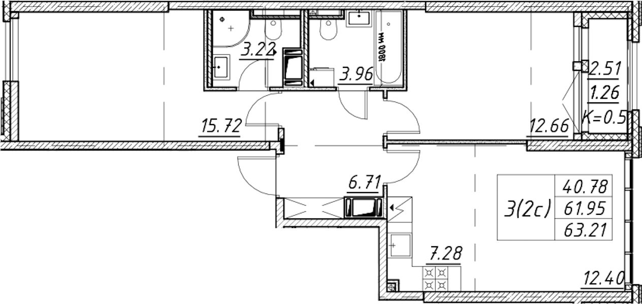 - Площадь63,21 м2