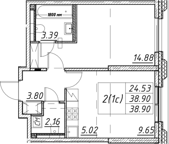 - Площадь38,9 м2