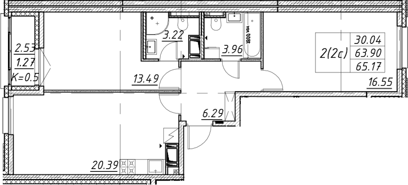 - Площадь65,17 м2