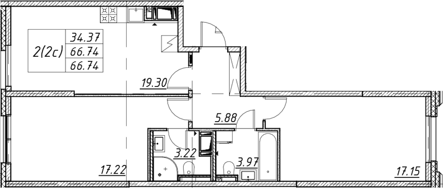 - Площадь66,74 м2