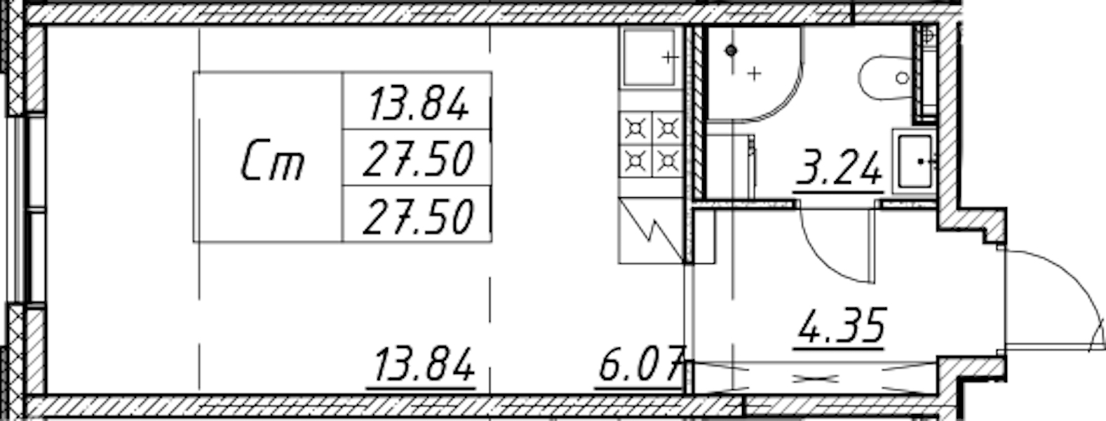 - Площадь27,5 м2