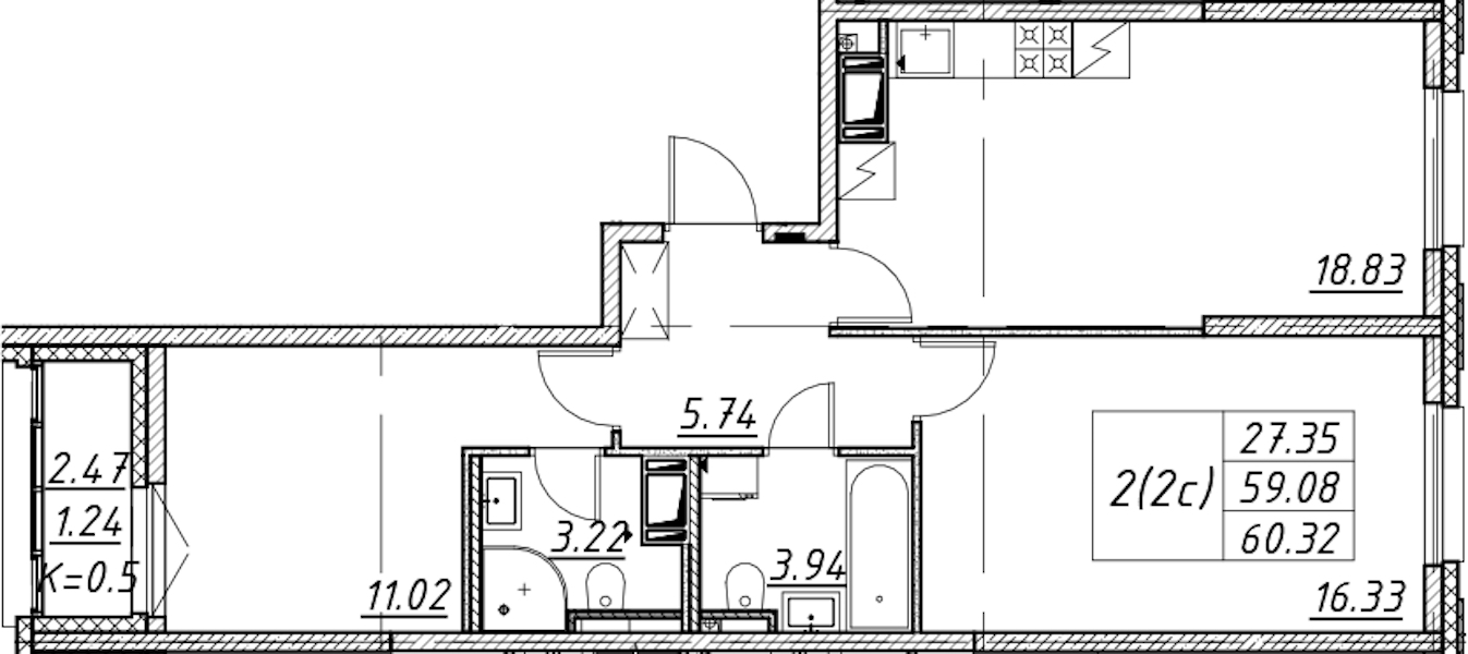 - Площадь60,32 м2