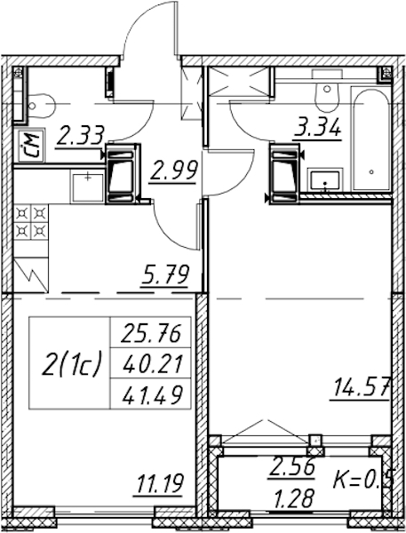 - Площадь41,49 м2