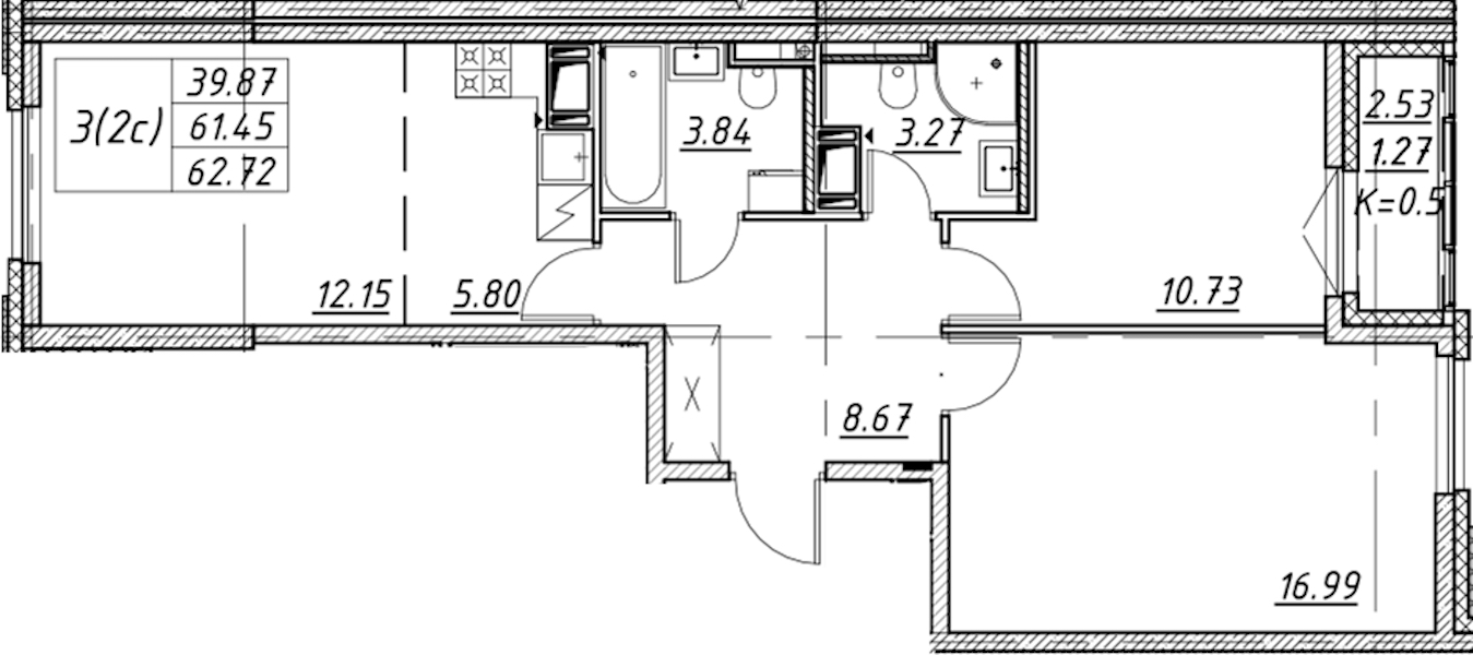 - Площадь62,72 м2