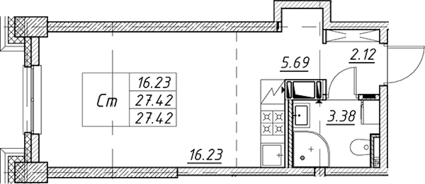 - Площадь27,42 м2