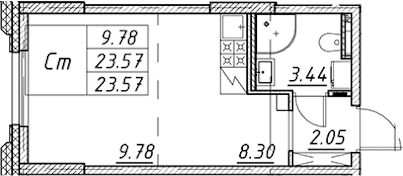 - Площадь23,57 м2