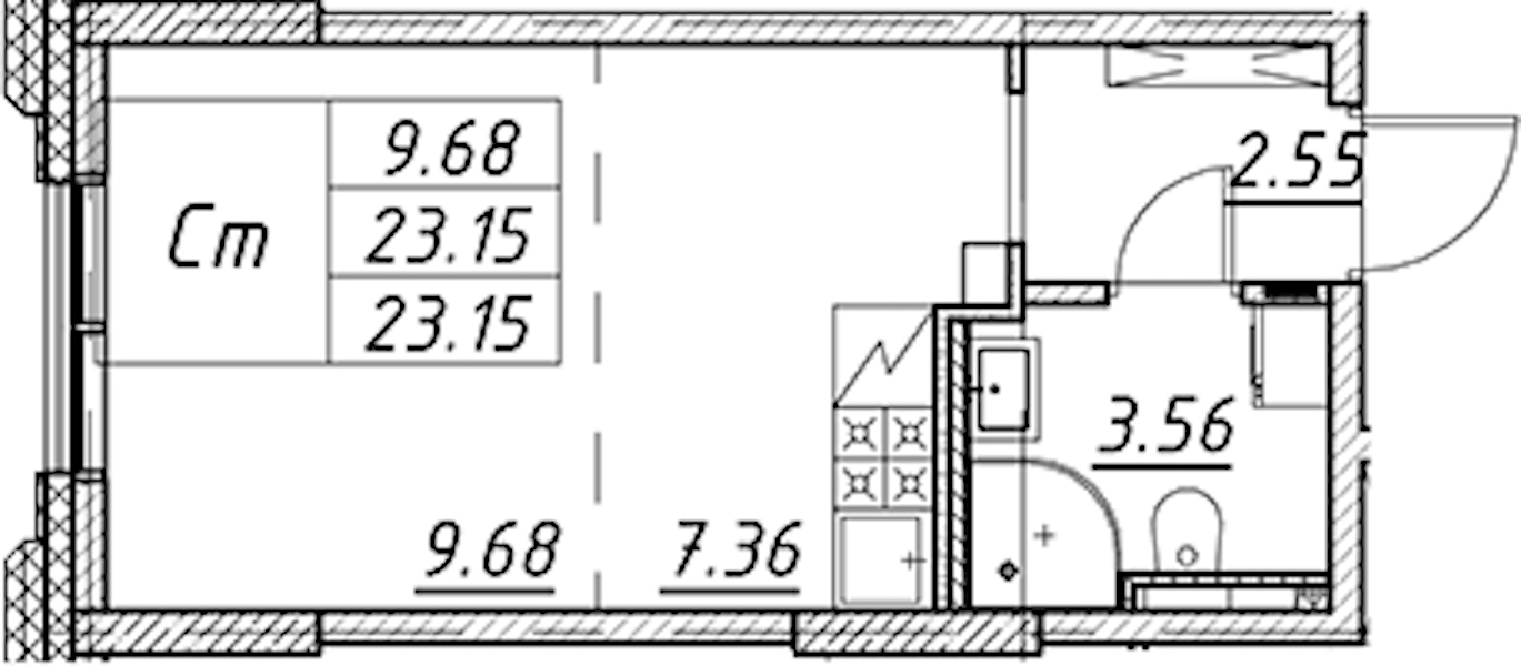 - Площадь23,15 м2