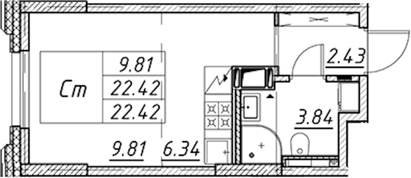 - Площадь22,42 м2