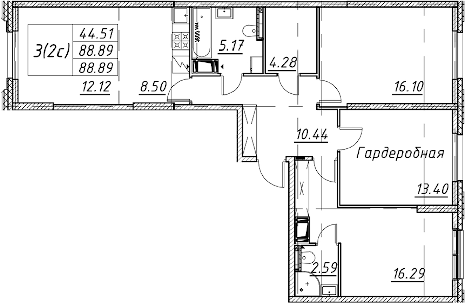 - Площадь88,89 м2