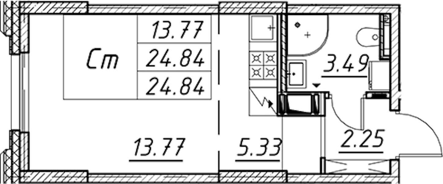 - Площадь24,84 м2