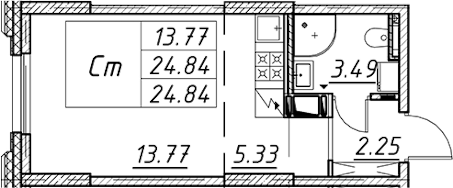 - Площадь24,84 м2