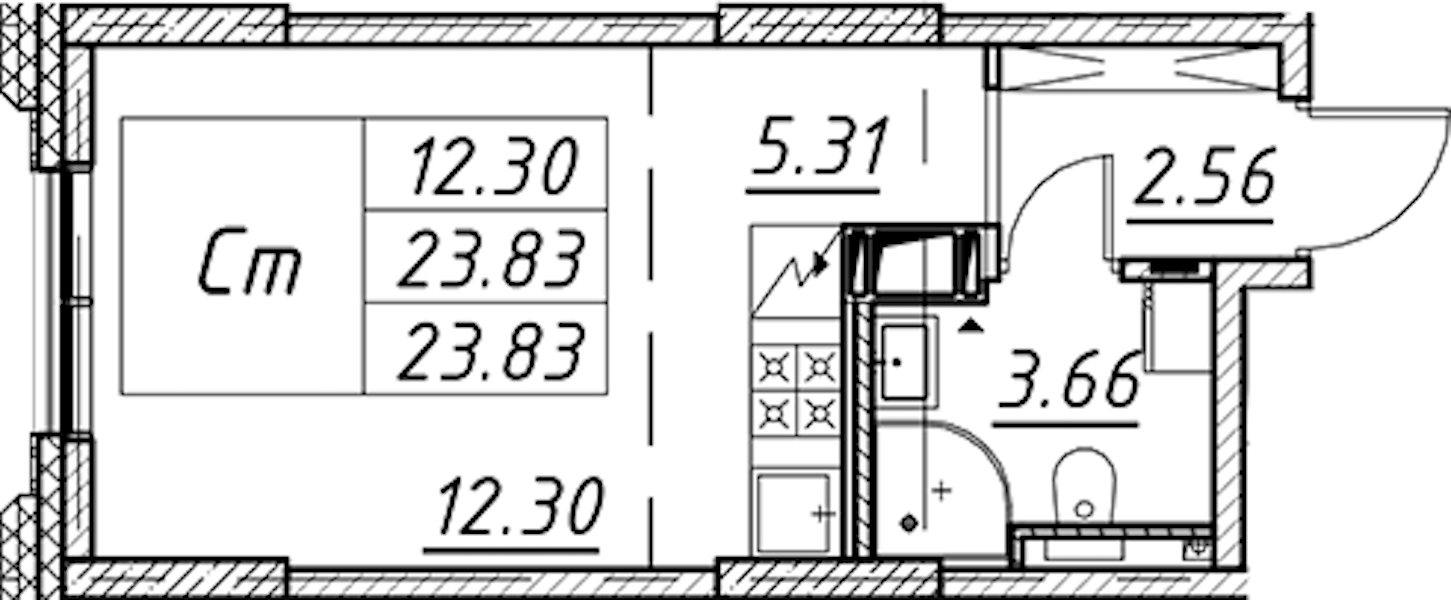 - Площадь23,83 м2