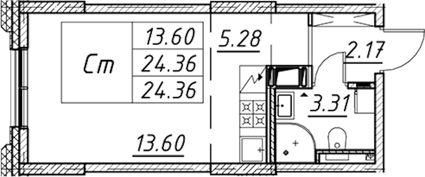 - Площадь24,36 м2