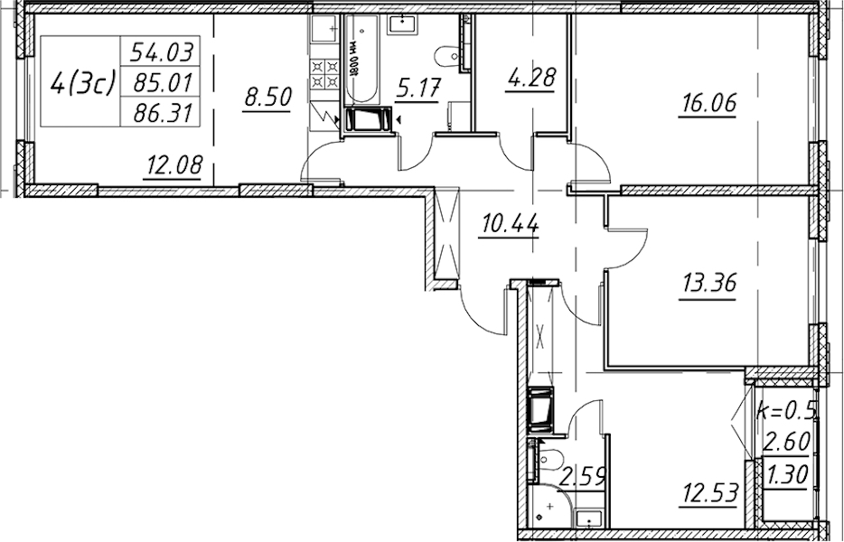 - Площадь86,31 м2