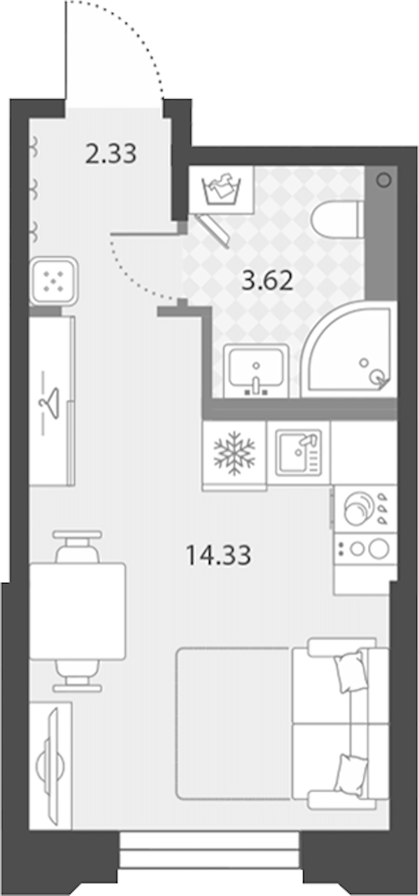 Квартира-студия на 2-ом этаже 20,28 кв.м