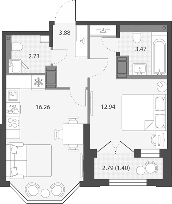 • Площадь40,68 м2