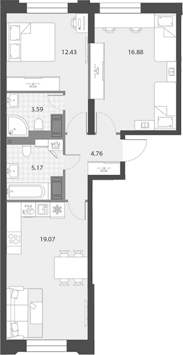 - Площадь кухни19,07 м2
