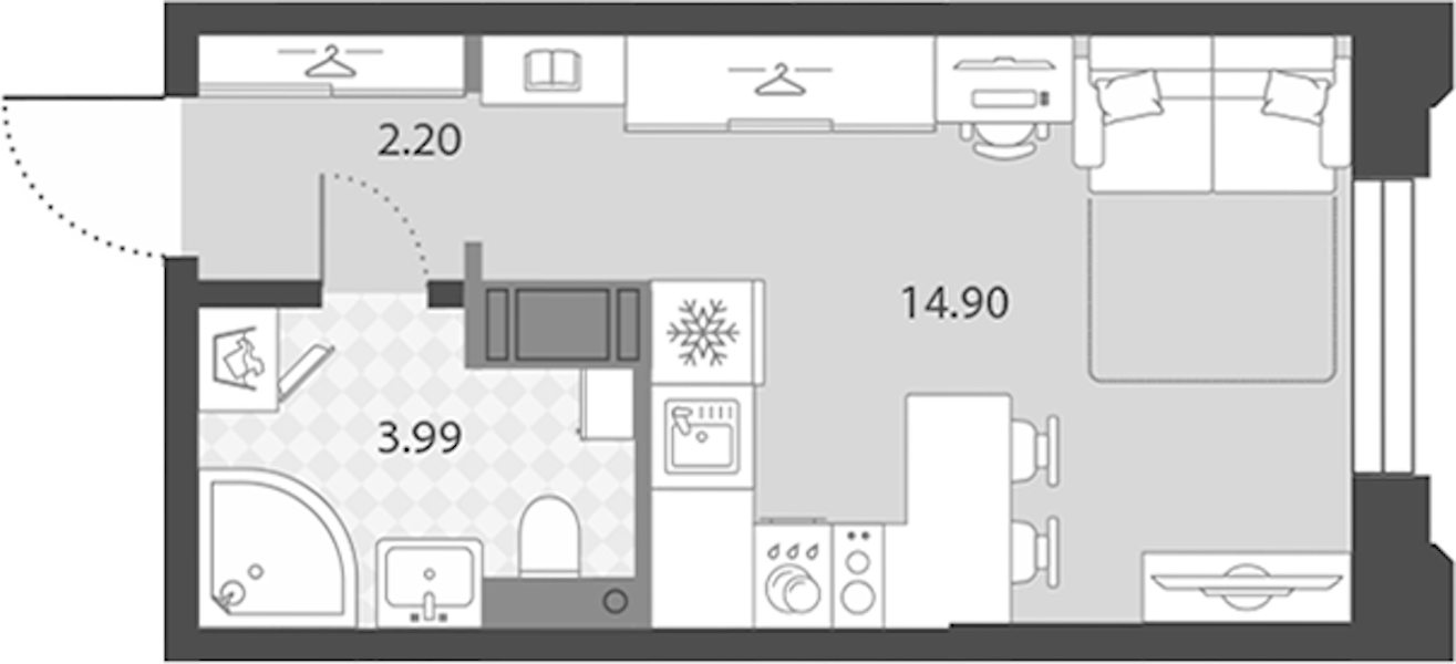 - Площадь21,09 м2