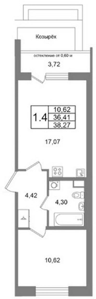 - Площадь36,41 м2