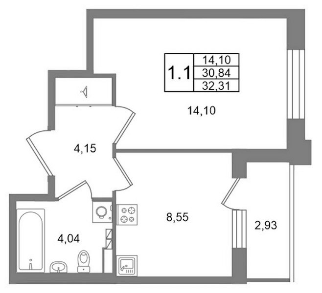 - Площадь30,84 м2