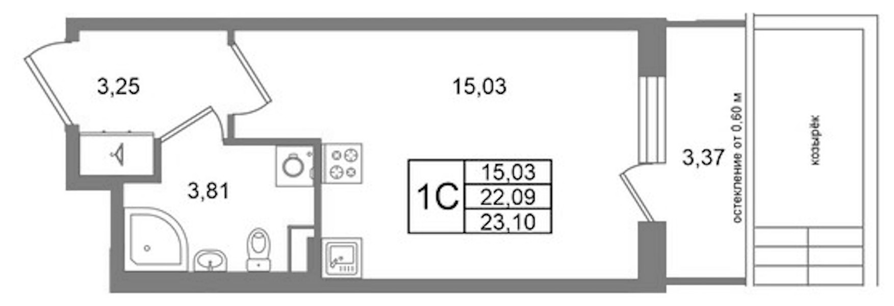 • Площадь22,09 м2