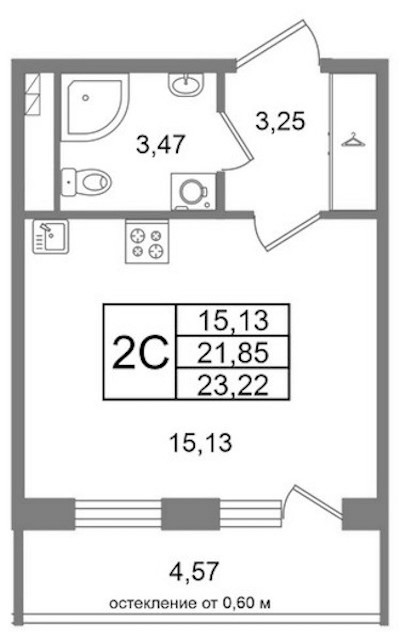 - Площадь21,85 м2