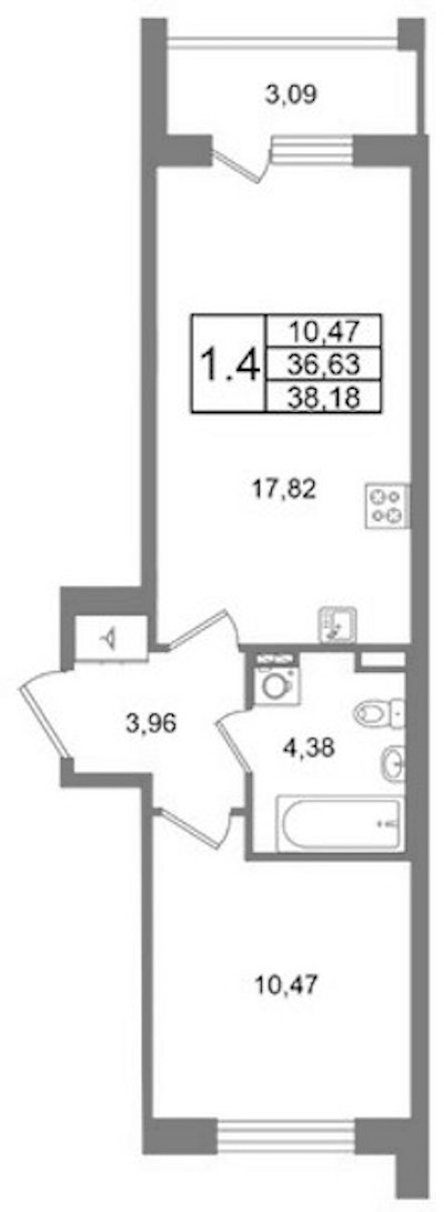 - Площадь кухни17,82 м2