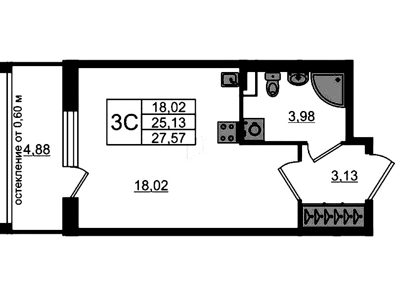 Квартира-студия на 1-ом этаже 25,13 кв.м