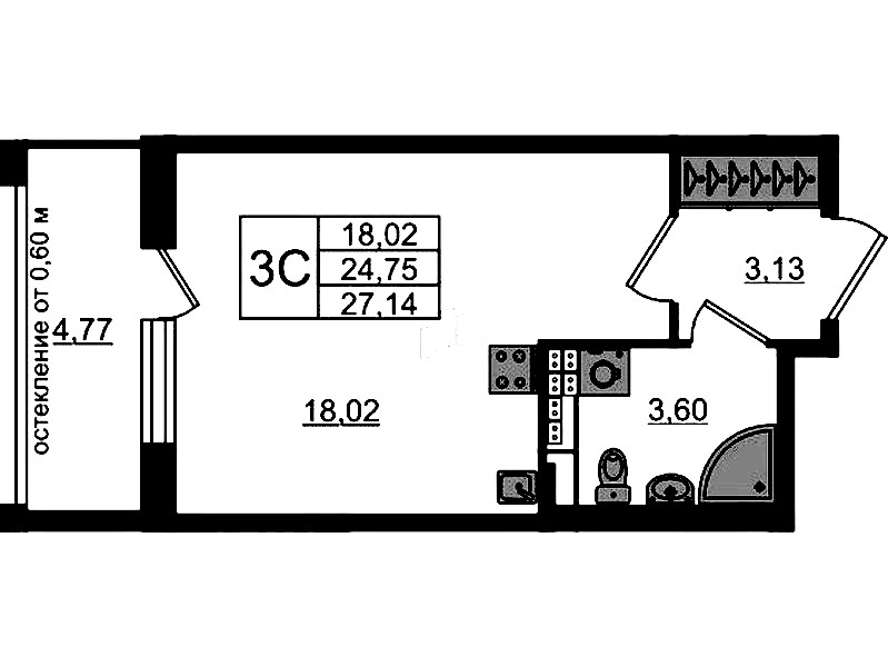 - Площадь24,75 м2