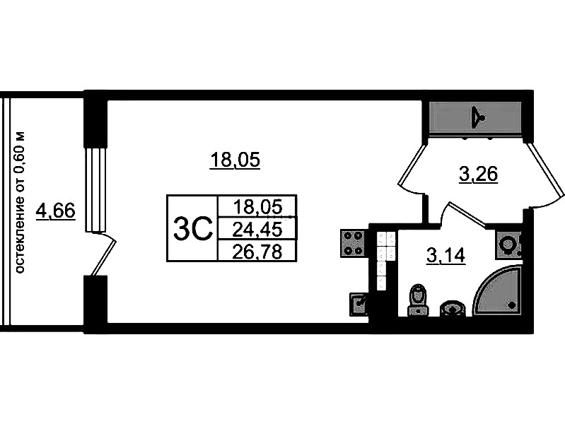 - Площадь24,45 м2