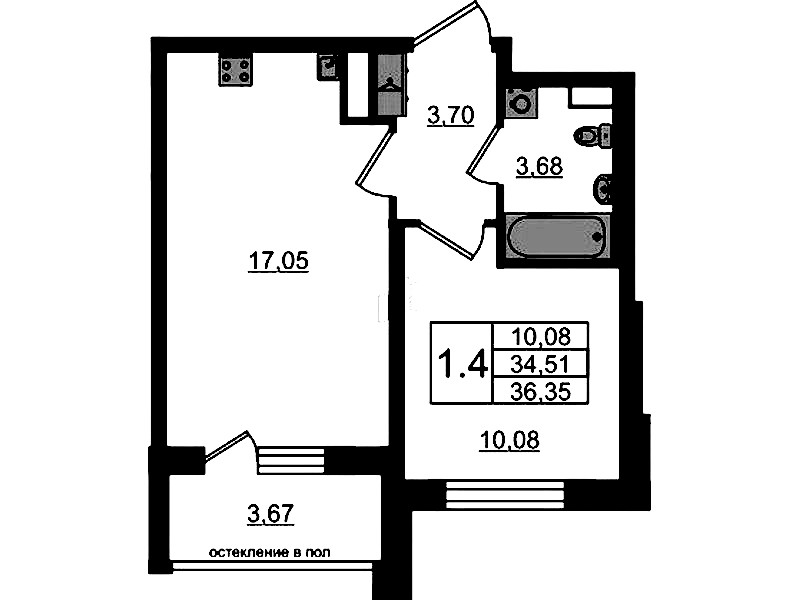 - Площадь34,51 м2