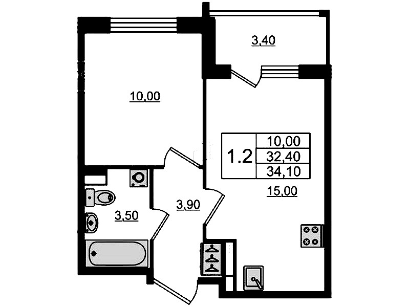 - Площадь35,3 м2