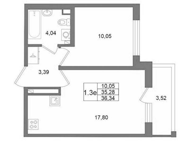 Однокомнатная квартира на 3-ем этаже 35,28 кв.м