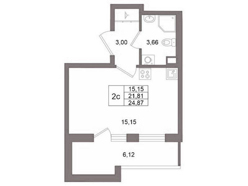 Квартира-студия на 2-ом этаже 21,81 кв.м