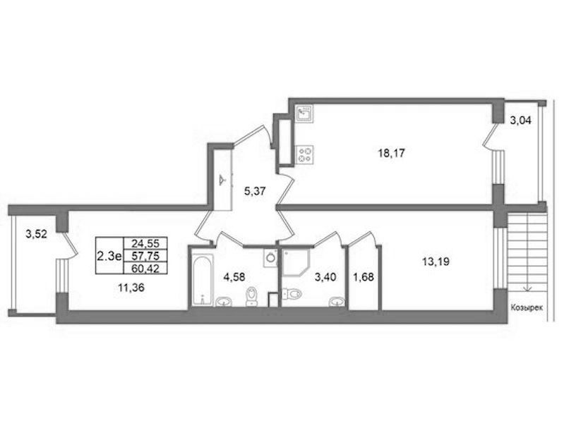 • Площадь57,75 м2