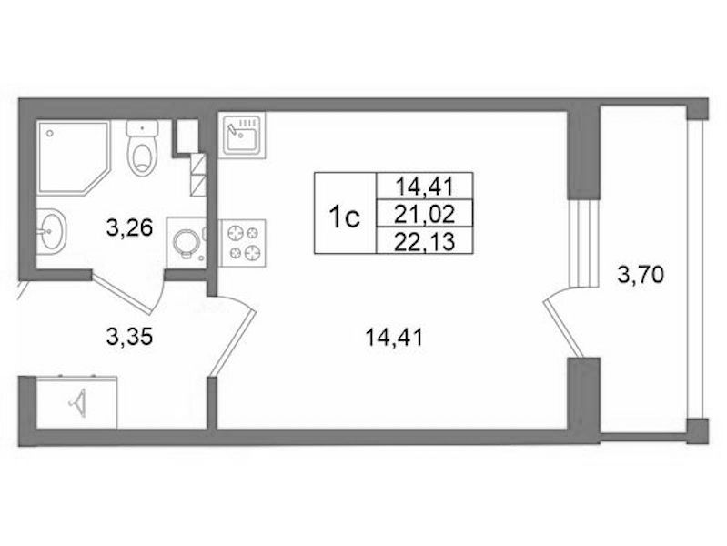 - Площадь21,02 м2