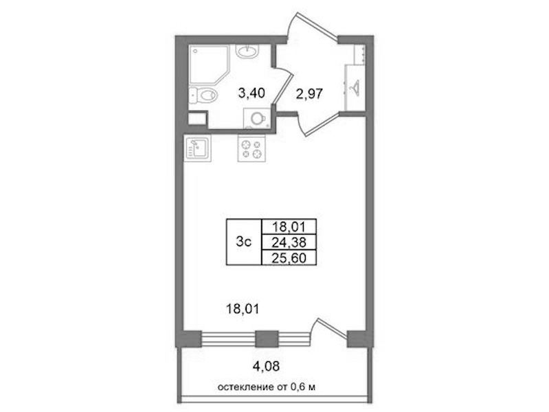 - Площадь24,38 м2