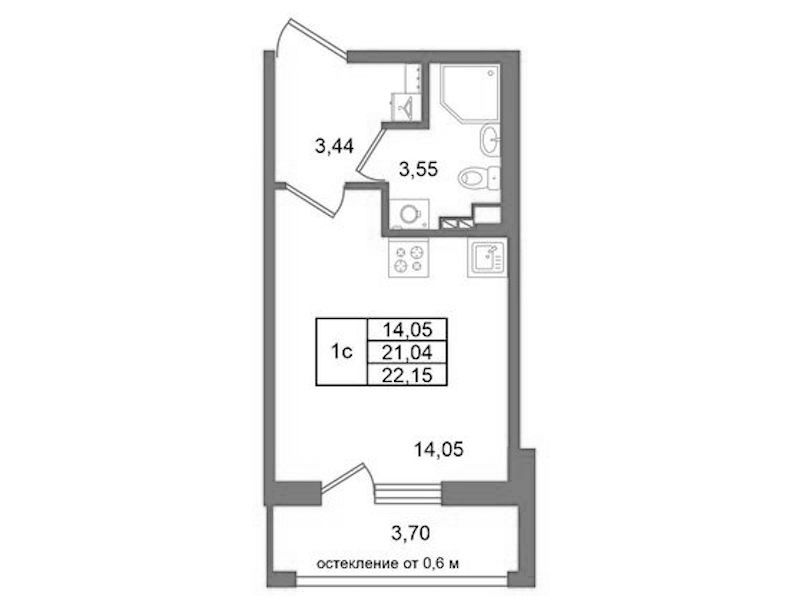 Квартира-студия на 3-ем этаже 21,04 кв.м