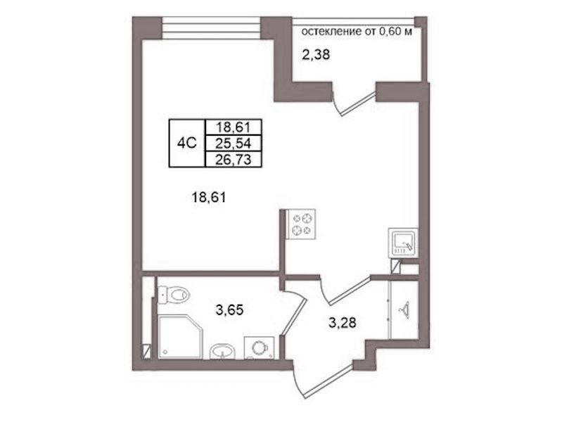 - Площадь25,54 м2