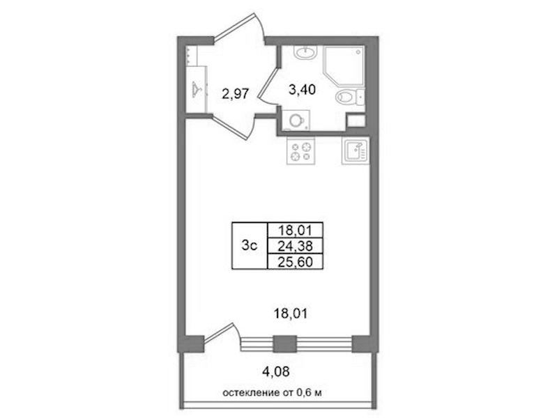 - Площадь24,38 м2