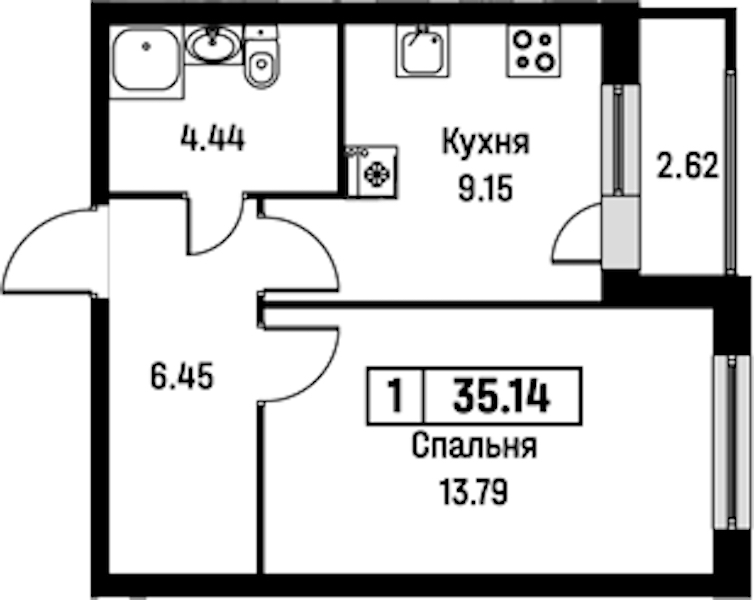 - Площадь35,14 м2